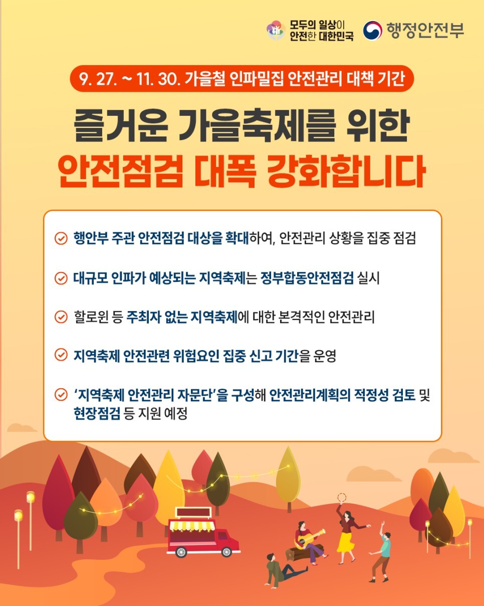 ✔ '지역축제 안전관리 자문단'을 구성해 안전관리계획의 적정성 검토 및 현장점검 등 지원 예정