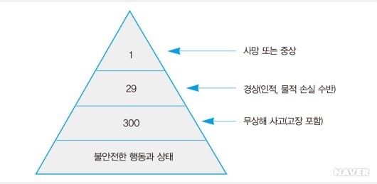1920년대에 미국 한 여행 보험 회사의 관리자였던 허버트 W. 하인리히(Herbert W. Heinrich)는 7만 5,000건의 산업재해를 분석한 흥미로운 법칙 하나를 발견했다. 그는 조사 결과를 토대로 산업 안전에 대한 1 : 29 : 300 법칙을 주장했다.