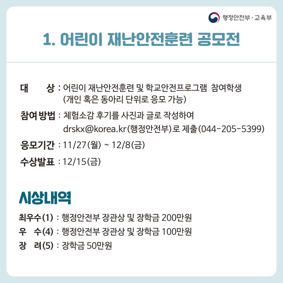 | 국민안전과 밀접한 우수 재난안전제품 발굴․보급 (0) | 2023.11.29 |