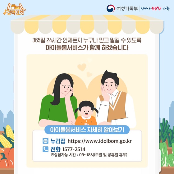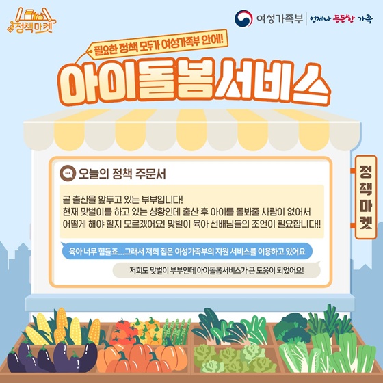여성가족부의 아이돌봄서비스를 응원하며 저출산 정책도 다른 부처와의 협업 등으로 꼭 이루어 내었으면 한다.