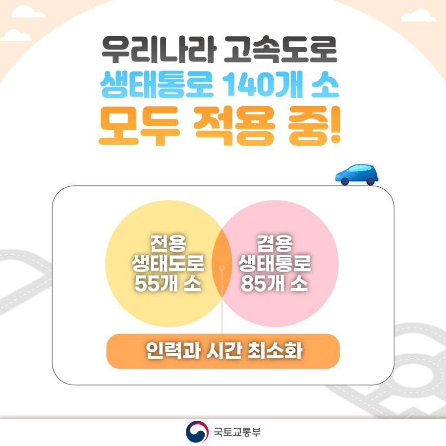 전용 생태도로 55개 소 + 겸용 생태통로 85개 소