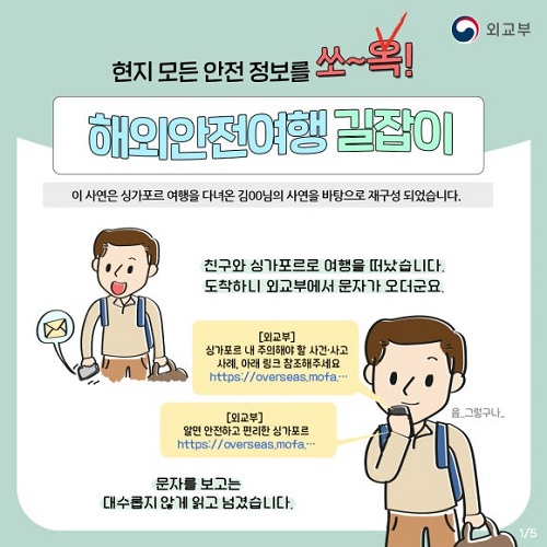 ‘해외안전여행 길잡이’는 현지의 다양한 안전정보를 하나의 게시물로 총망라했을 뿐만 아니라, 재외공관 누리집별로 상이했던 해외여행 안전정보 게재 방식을 일원화하여 해외여행 안전정보에 대한 우리 국민의 접근성과 편의성을 제고했습니다.