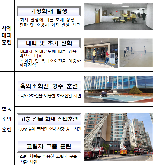 ○ 세종청사 중앙동에서 화재가 발생할 경우, 대응이 가능한지를 사전에 점검해 보고 입주 기관 직원의 신속한 대피를 유도하기 위해 마련됐다.