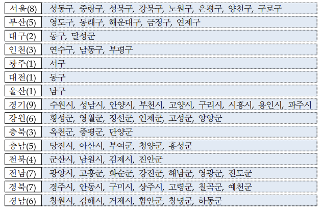 광역지자체는 울산광역시, 경상남도 등 5개 기관
