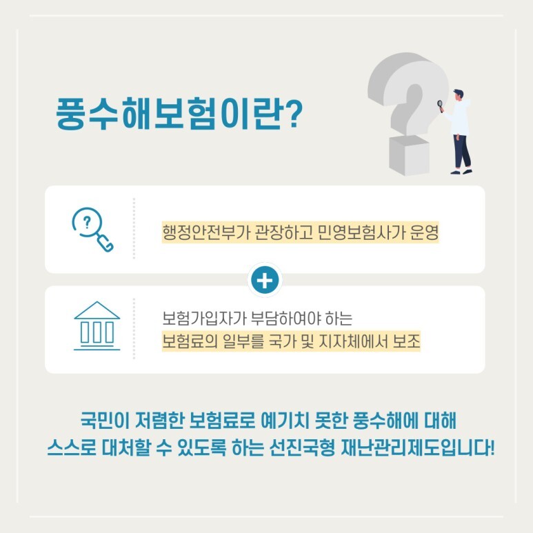 이에 따라 국민이 저렴한 보험료로 예기치 못한 풍수해에 대해