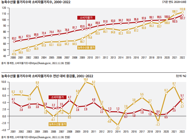 - 농축수산물 물가지수 : 소비자가 구입하는 농축수산물의 가격 변동을 측정하는 지수